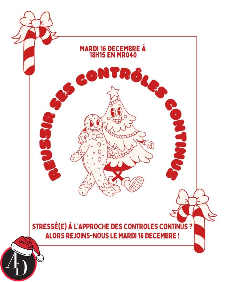 Tu es en première année et tu es stressé.e à l’approche des contrôles continus ? Alors réserve ta soirée du mardi 16 décembre ! 😼