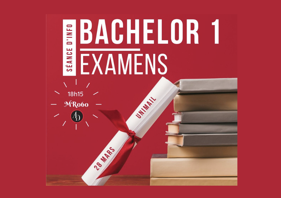 Séance d’info examens -Première de Bachelor Pour aider les étudiant.e.s en première année de Bachelor qui s’apprêtent à être confronté.e.s à leurs premiers examens en juin, l’AED vous annonce la mise en place d’une séance d’aide pour les examens ! Le but de cette séance est de vous offrir nos meilleurs conseils pour la préparation […]