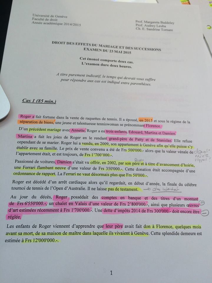 Droit des effets du mariage et des successions – Enoncé juin 2015 p1) et p2